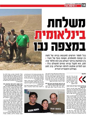 "International Delegation in Mitzpe Nevo", We made the front page and the center of the Maaleh Adumim newspaper.
