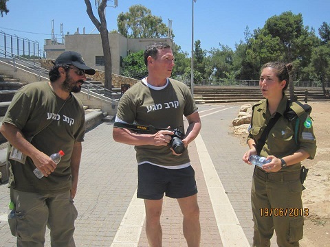 Channel, Petur, at Ammunition Hill chatting with Israeli soldier.