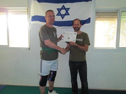 Srdjan from Croatia being awarded Green belt rank in IKI Krav Maga.
