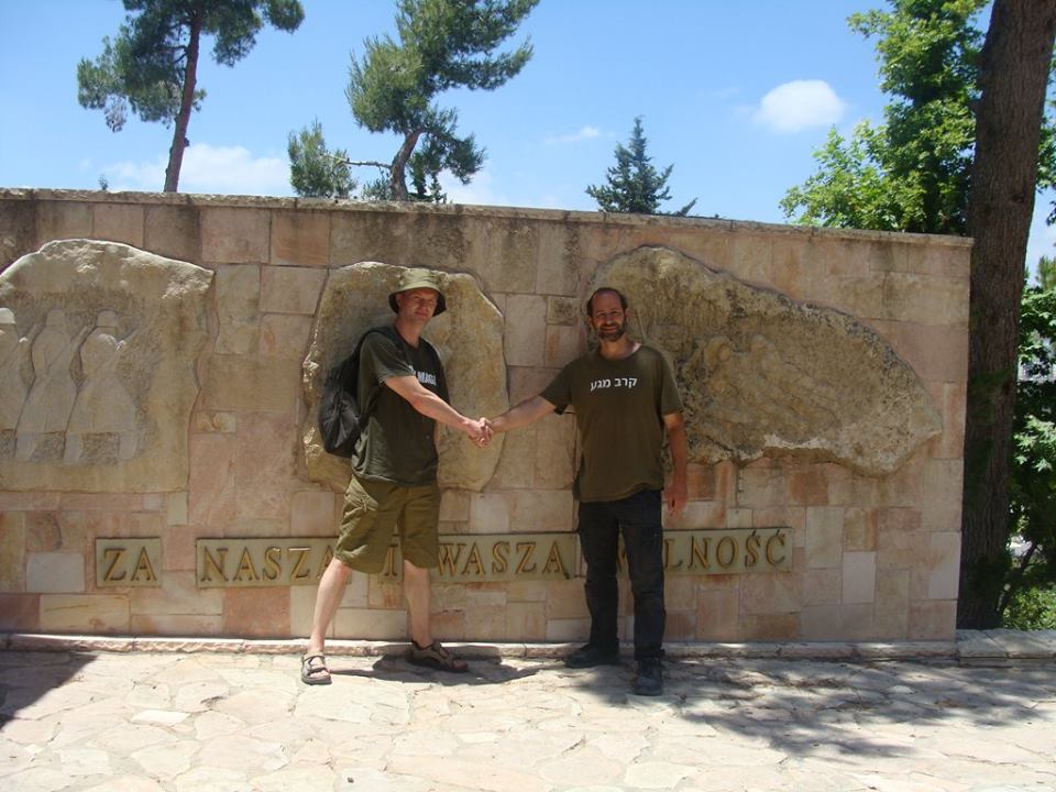 Tomasz from Poland with Moshe, paying our respect to the warriors, Jews and Poles who fought side by side for freedom. Centuries ago my family escaped the Spanish/Portuguese/Italian persecution and found refuge in Poland.
