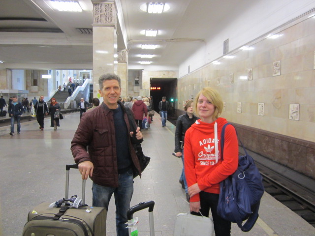 Kolay and Lida helping me with my luggage on the Moscow subways.