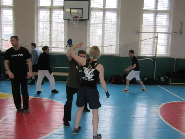 Eddie spent 3 years in Israel, now trains Krav Maga with one of our IKI schools in Moscow, working hard, building up a sweat he prepares to defends against Olga.