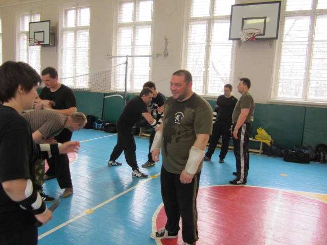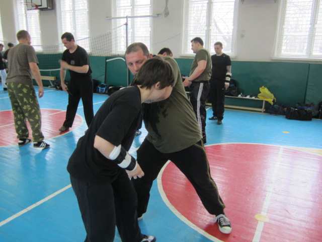 IKI Instructor Azat Fatihov explaining IKI gun defense to new students.