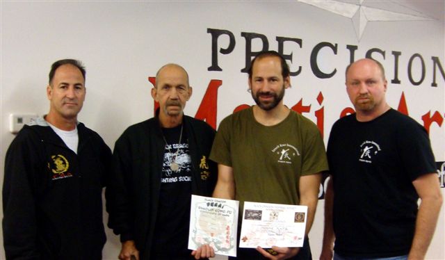 Moshe Katz being promoted to 5th dan by the Black Dragon Society, with Professor Joe Cayer, Dr. Lawrence Day, and Soke John Liptak, November 2010