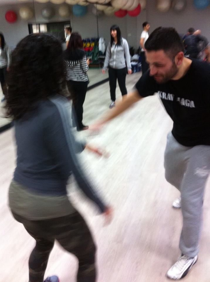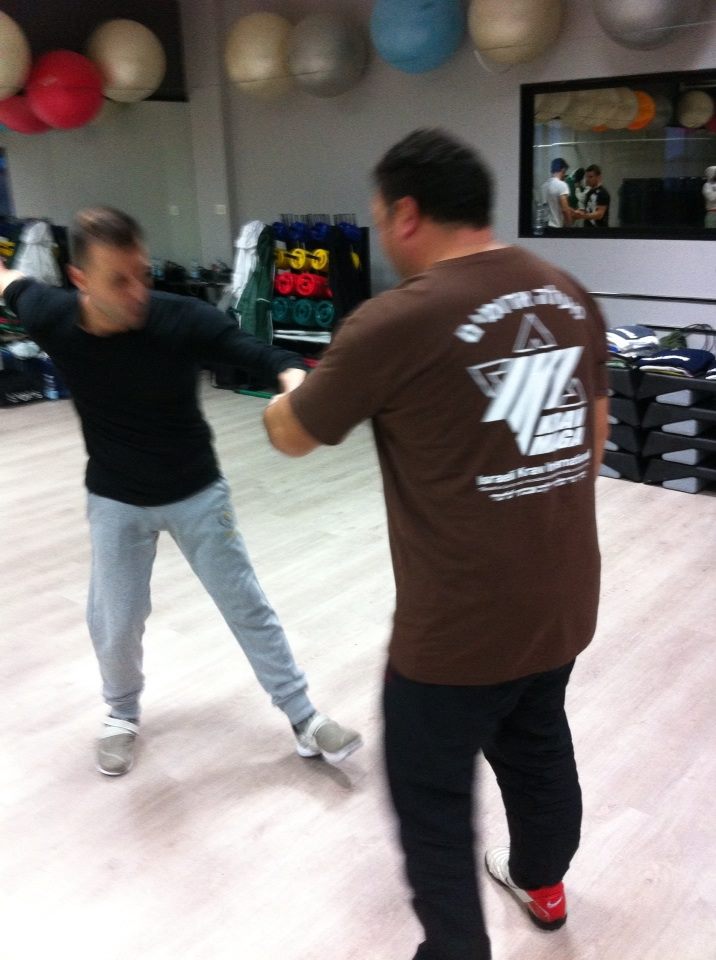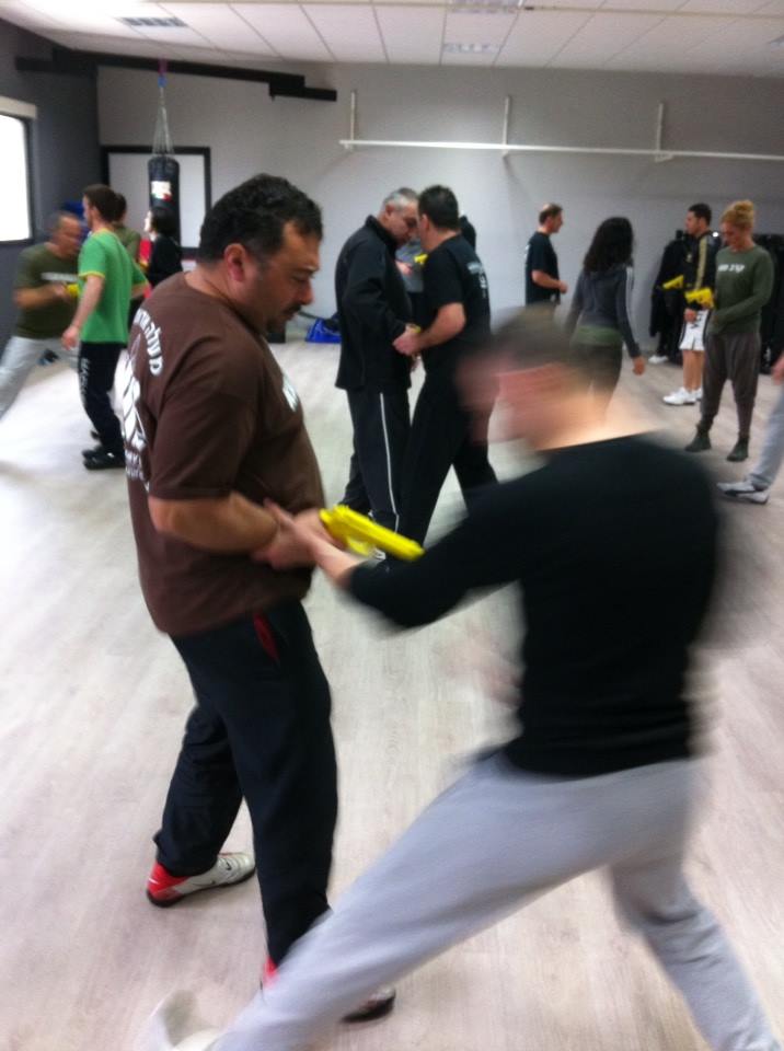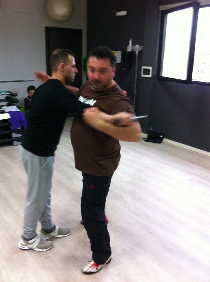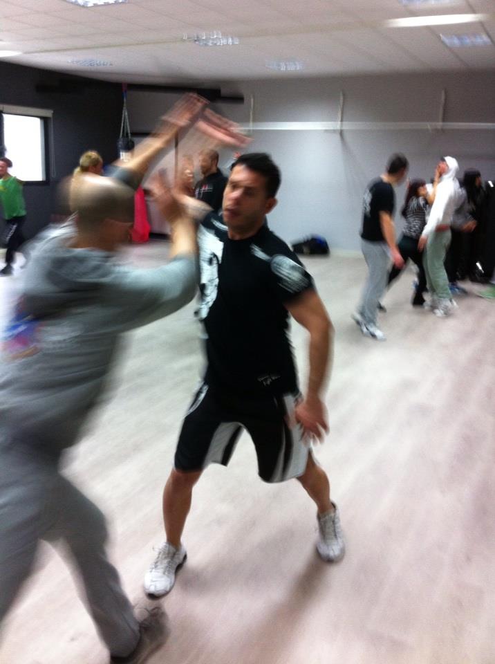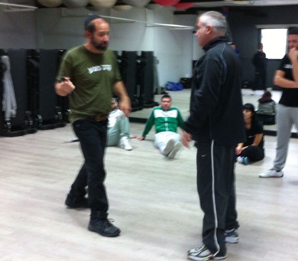 Moshe teaching knife defense, with Walter, Sardegna police force.