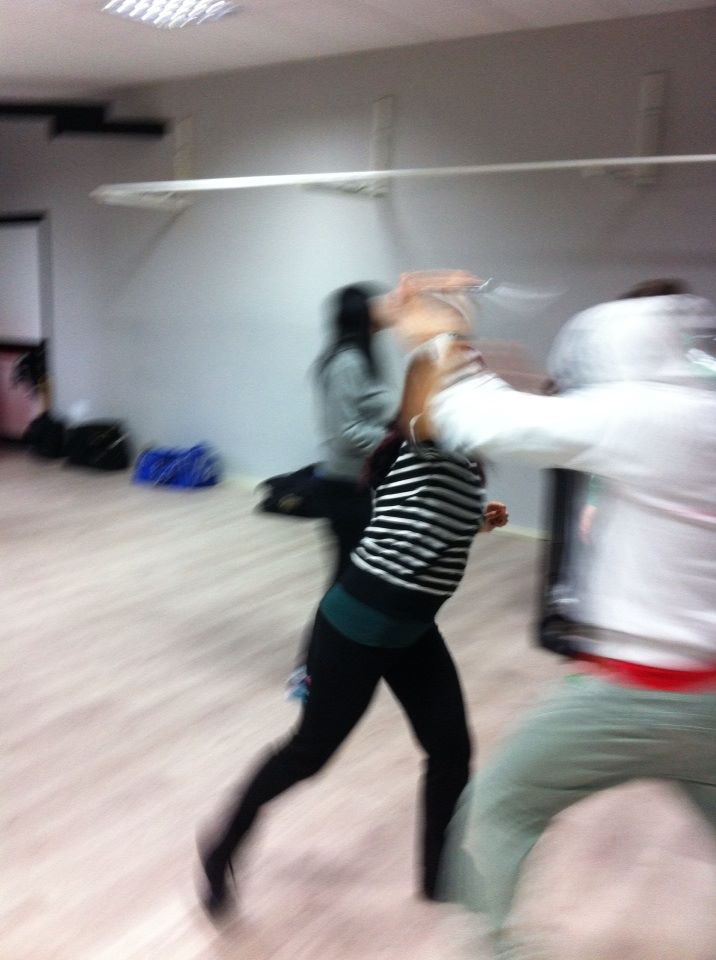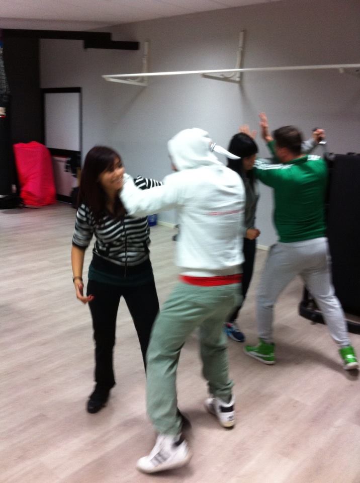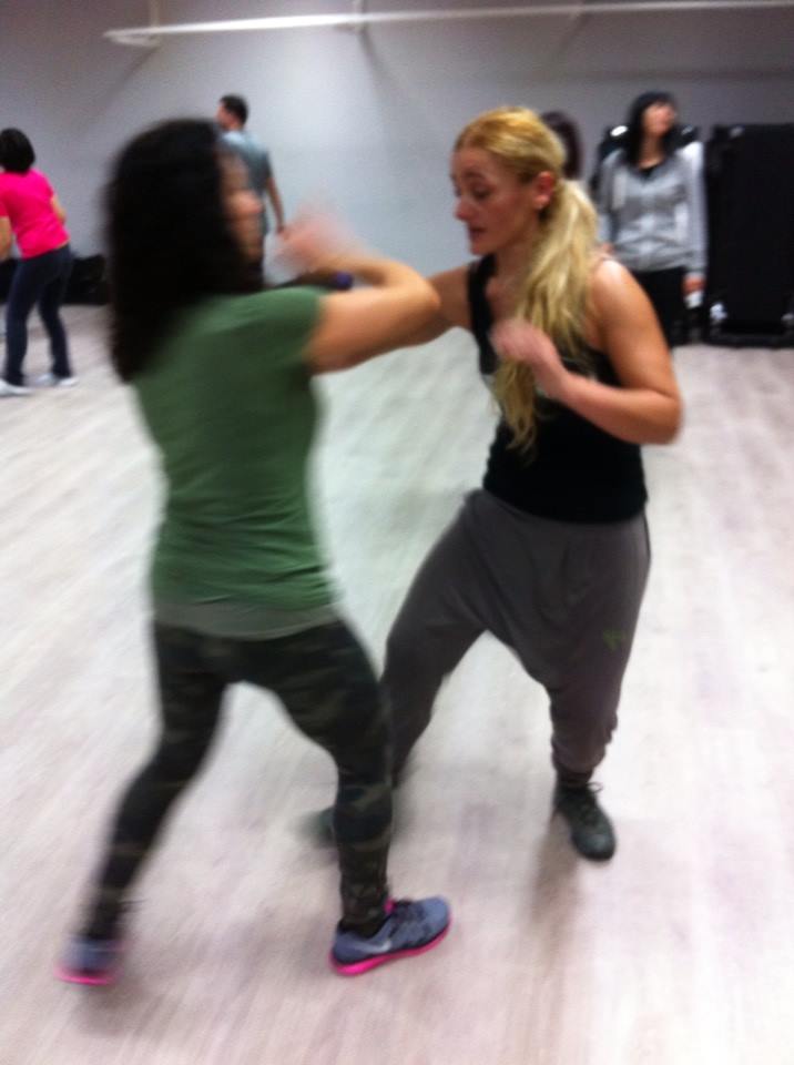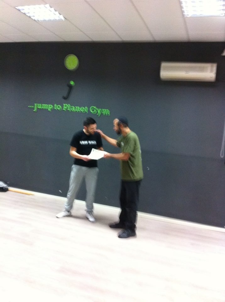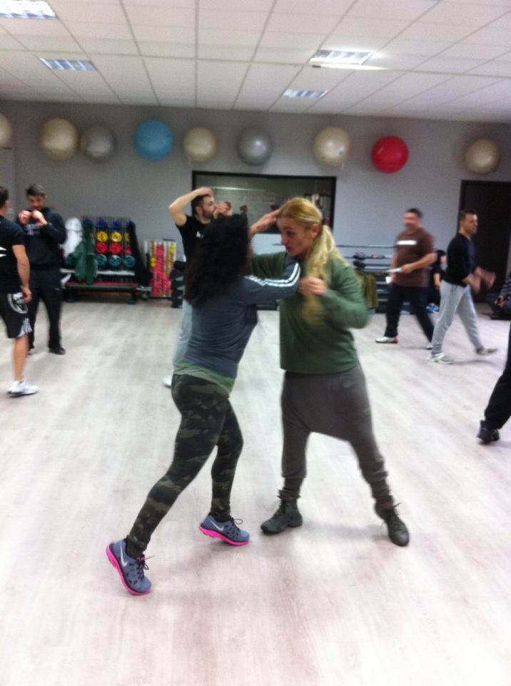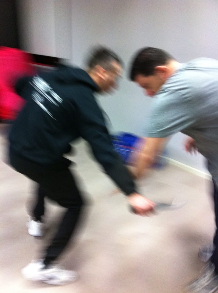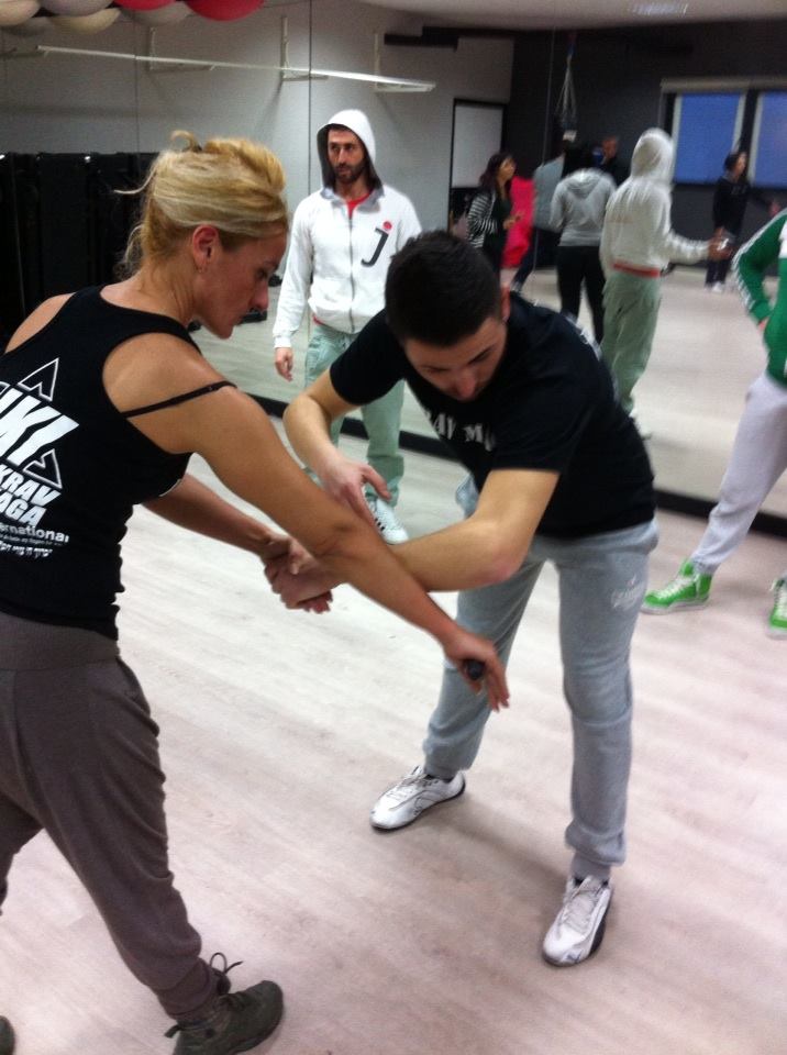 Moshe teaching knife defense, with Walter, Sardegna police force.