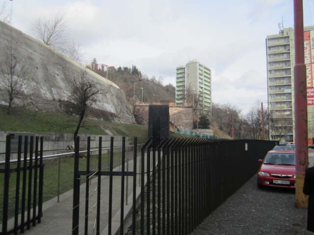 Just up the road from the synagogue, housed in the Talmud Torah/Chinese restaurant building, was the site of the Great Synagogue. Today there is a memorial there, next to a new building. The new building has none of the grandeur of the synagogue that once stood here.