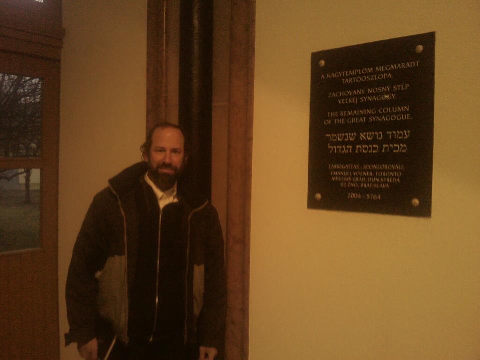 Moshe standing next to the pillar that remains of the great synagogue, just before Mincha on Friday afternoon.