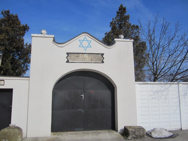 The entrance to the Jewish cemetery of Dunaszerdahely. The sign in Hebrew tells the story how over 250 years ago the members of this holy community came together, under the guidance of the rabbis, and agreed to build this wall around the cemetery.