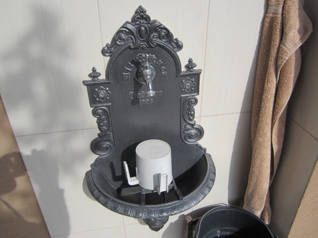 Basin for washing hands after leaving the cemetery. This is a Jewish tradition.