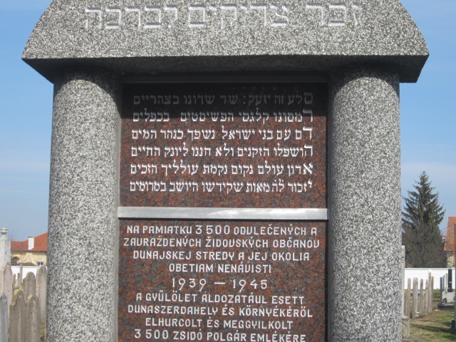 Rabbi Asher Anshel Katz, of blessed memory, may God avenge his death. He was the last rabbi to serve as "Father of the Court" in Dunaszerdahely before the Nazi era. He and his son, Rabbi Moshe Yehuda Katz, of blessed memory, may God avenge his death, were killed by the Nazis in 1944. All three rabbis, along with many others, were killed on the same day.