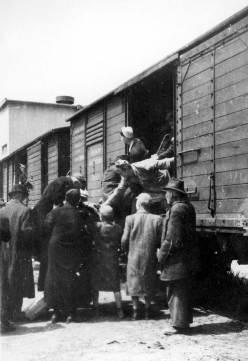 Jews of Dunaszerdahely being deported to the death camps. June 15, 1944