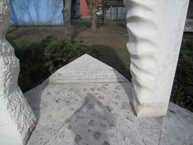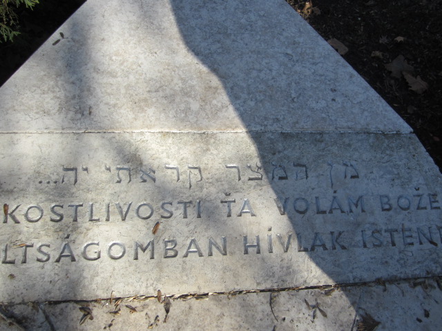 Close up view, in part..."This rock shell cry out, we have been robbed by demons in broad day light. Trampled by Fascists in double measure. The blood of the nation of Children of Israel was spilt like a river of water. The old were humiliated and the young were not shown mercy. Master of the world avenge the vengeance of your innocent ones. Remember the hundreds who sanctified He who sits in heaven."