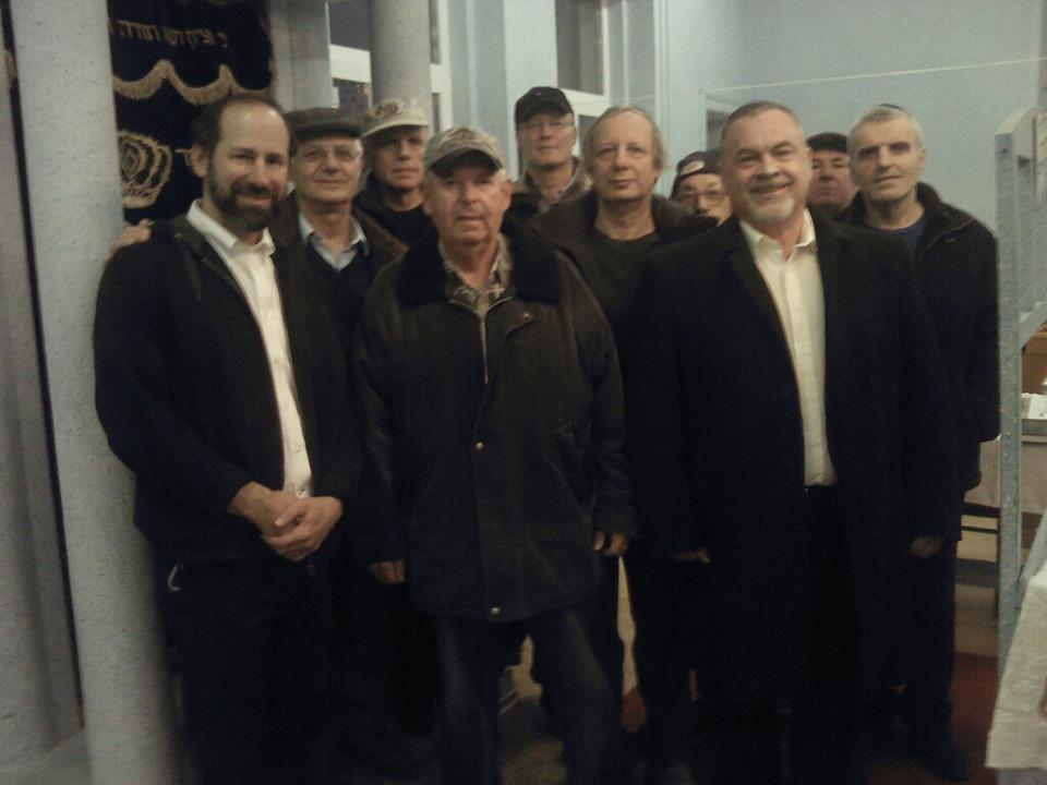 With some of the guys, the minyan, after services. Mr. B Stern, Mr. J Stern, Mr. Feldman, Mr. Kornfeld..and Tibor Sklut.