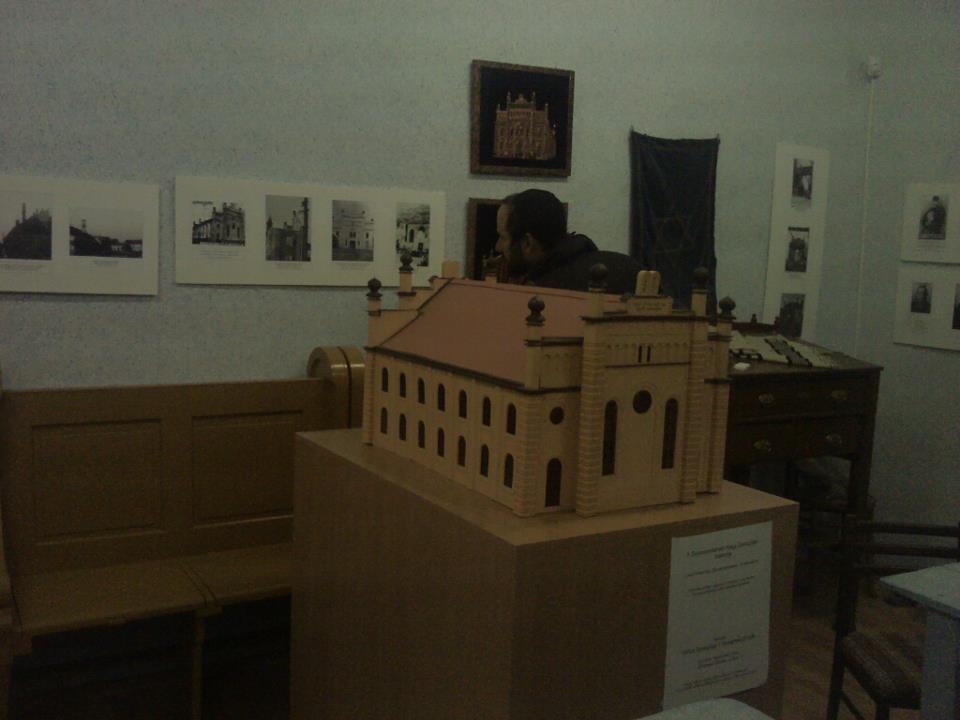 We enter the synagogue and Tibor shows me an original pillar that was taken from the old synagogue, the one no longer standing. Ahh, so I realize the current synagogue is not the one originally used. There was once another synagogue, a much larger one. The picture is beginning to emerge.