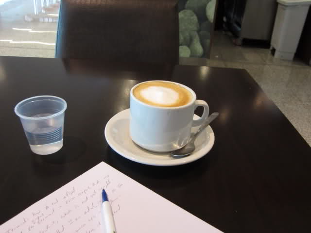 My coffee is served; as is the custom here it is served with a small cup of water. I am not sure of the significance of this custom but I have seen it in a dozen coffee houses here in Argentina. I like it, seems like – balance your coffee with a healthy glass of water, yin yang, a balance of life.