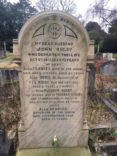 The final resting place of the Rigby family, including Eleanor Rigby, St Peter's Church, Woolton, Liverpool, England